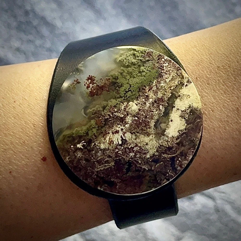 Gemstone Properties: Blends the nurturing elements of Moss Agate with scenic inclusions; ideal for balance, creativity and new perspective. It fosters hope, trust and forgiveness