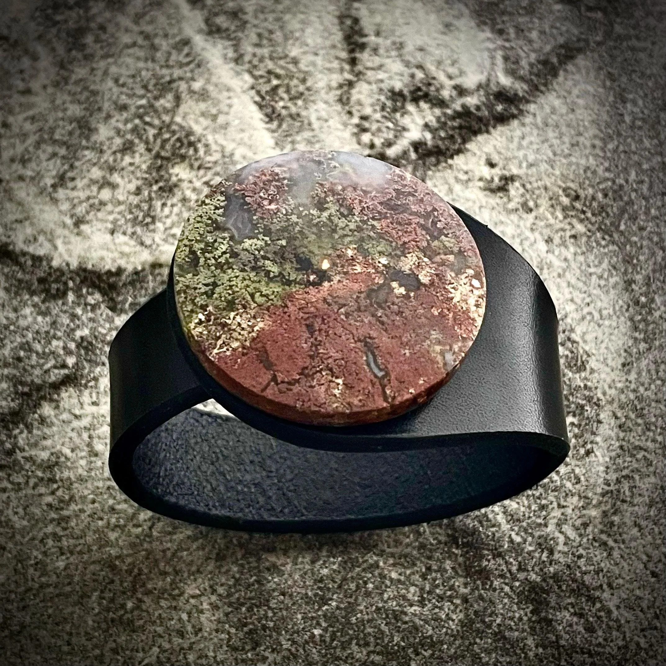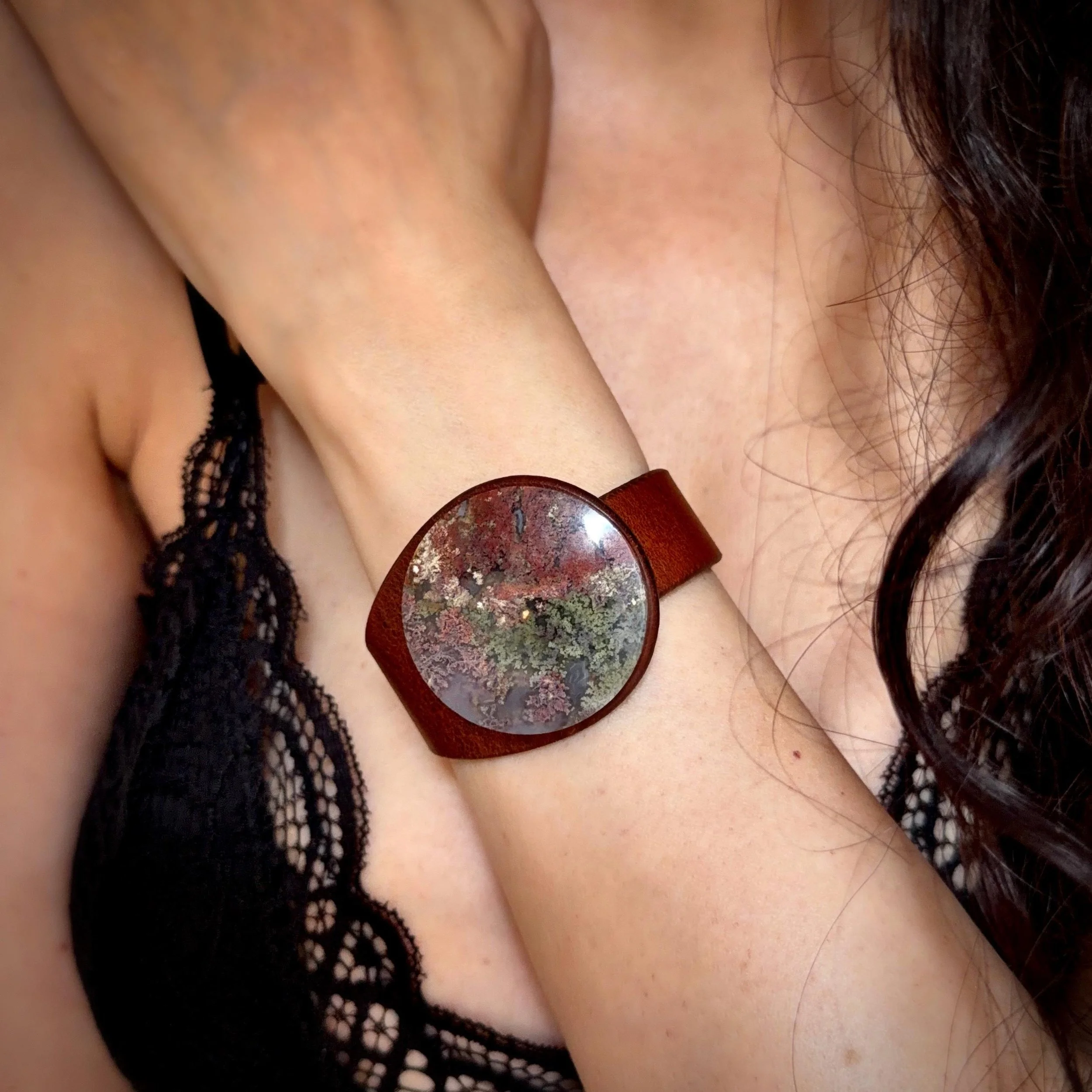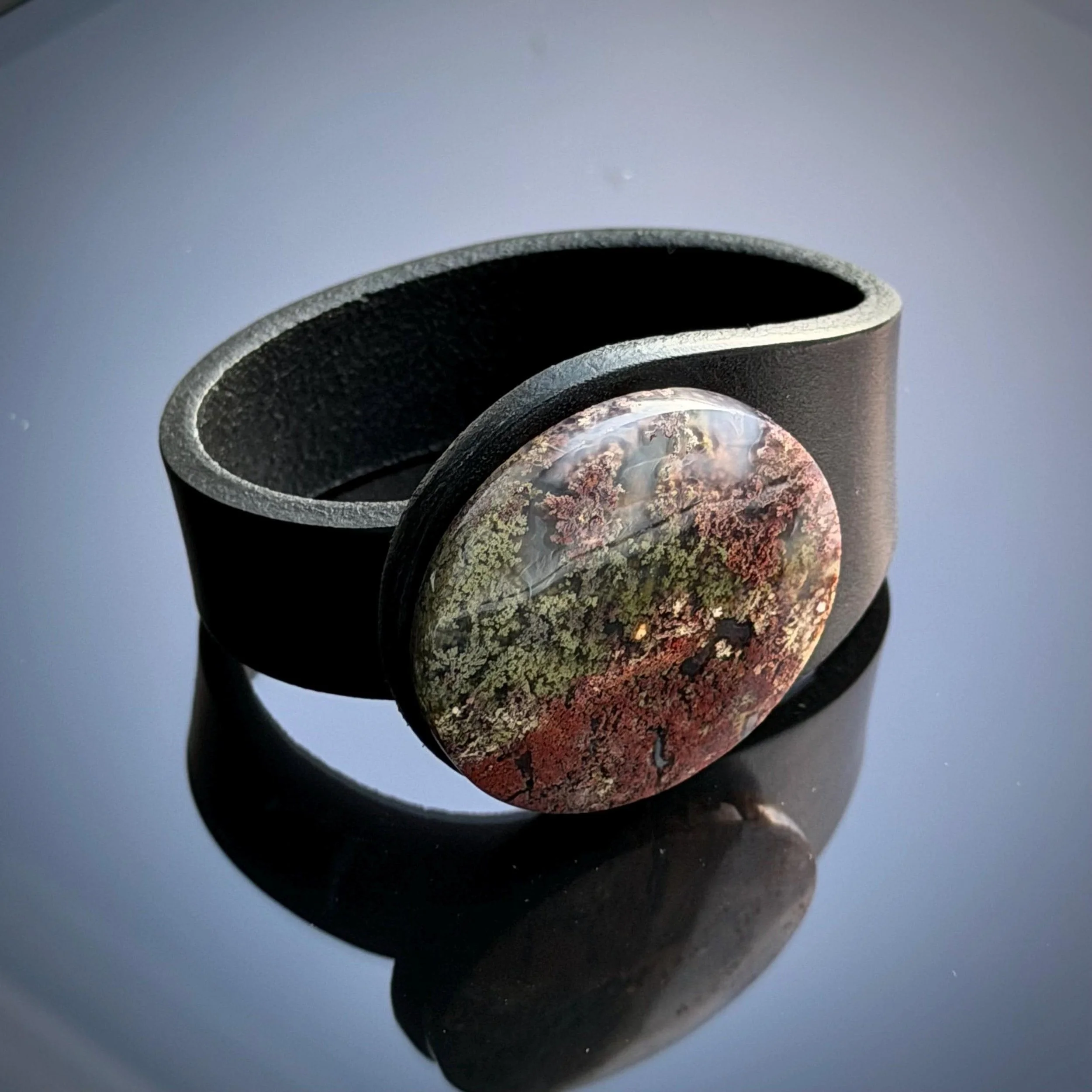 Moss Agate Gemstone & Leather Cuff