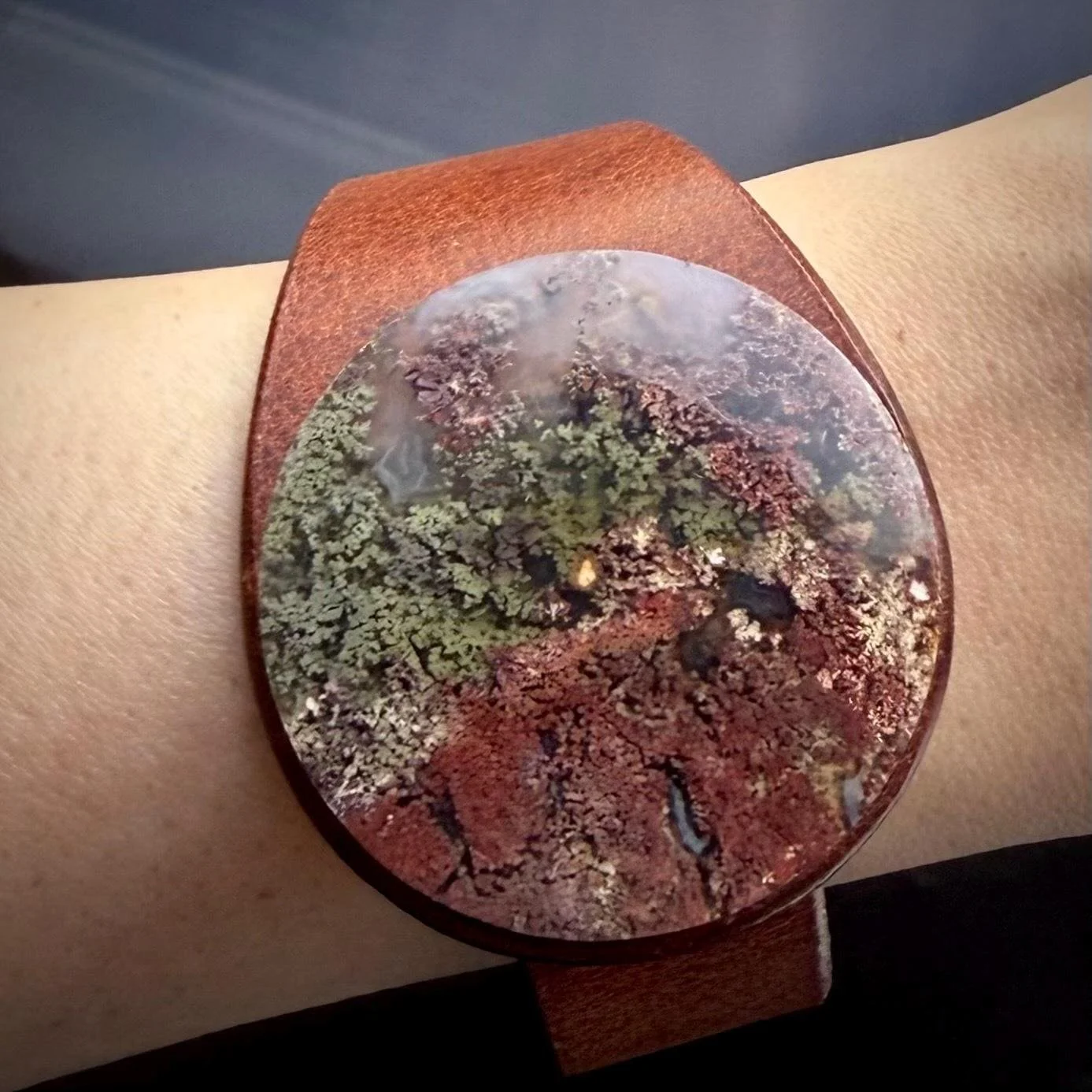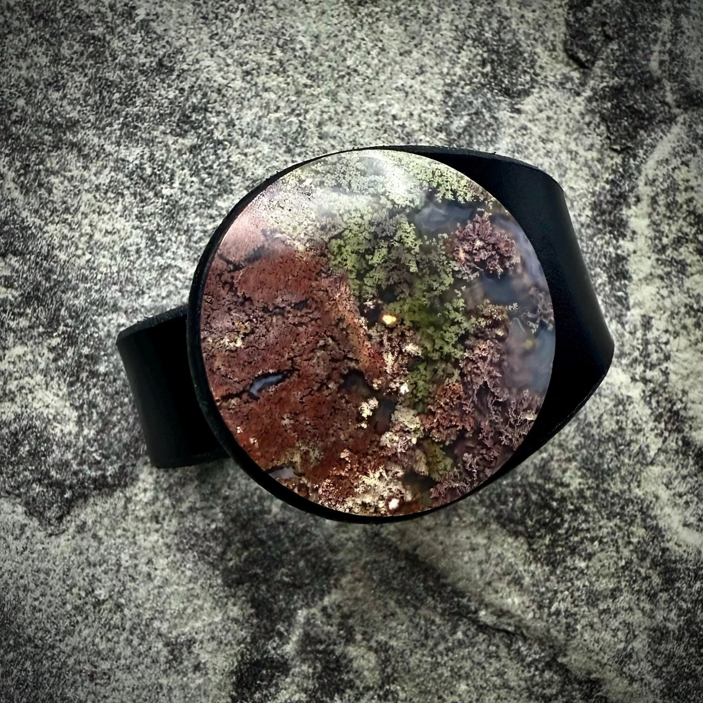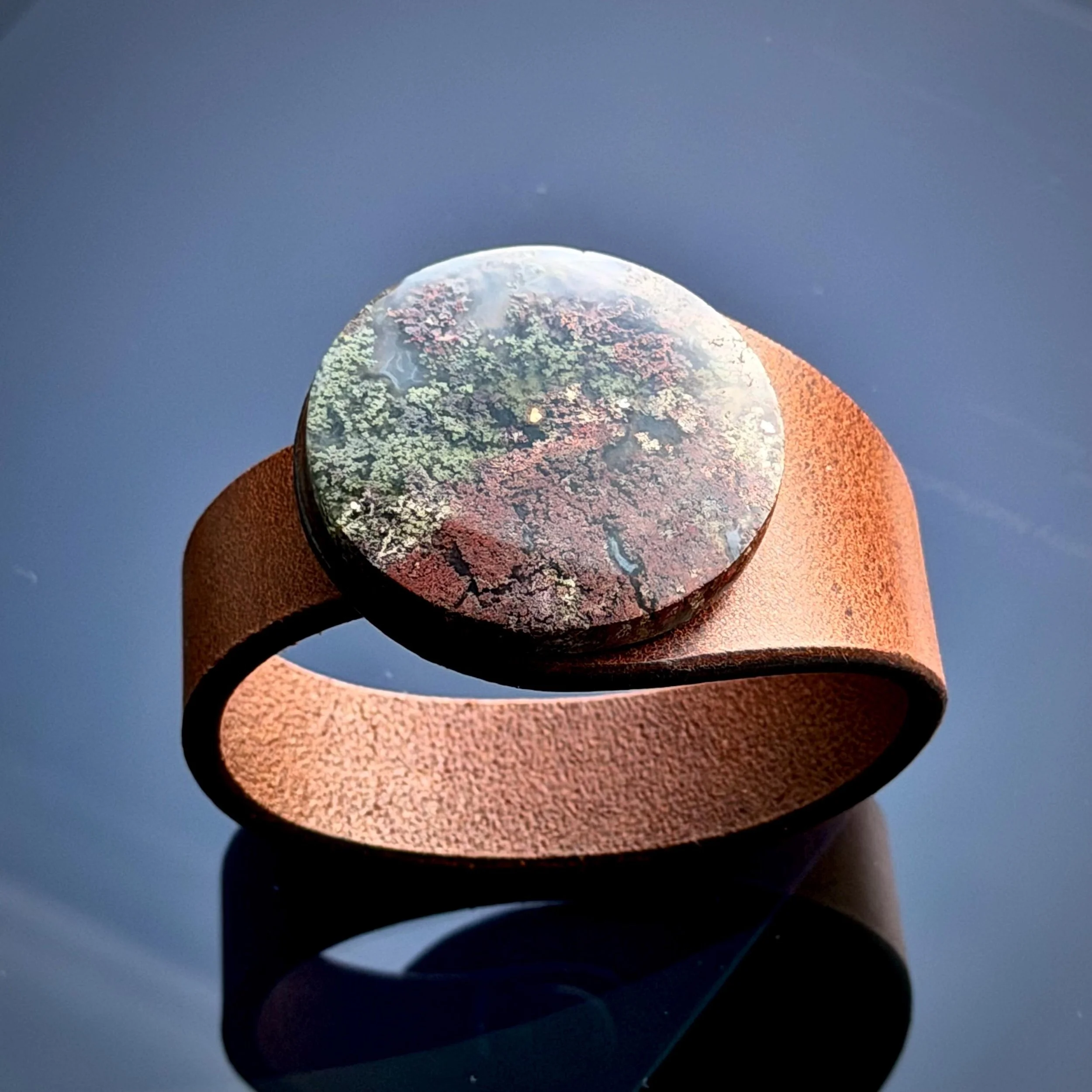 Moss Agate Gemstone & Leather Cuff