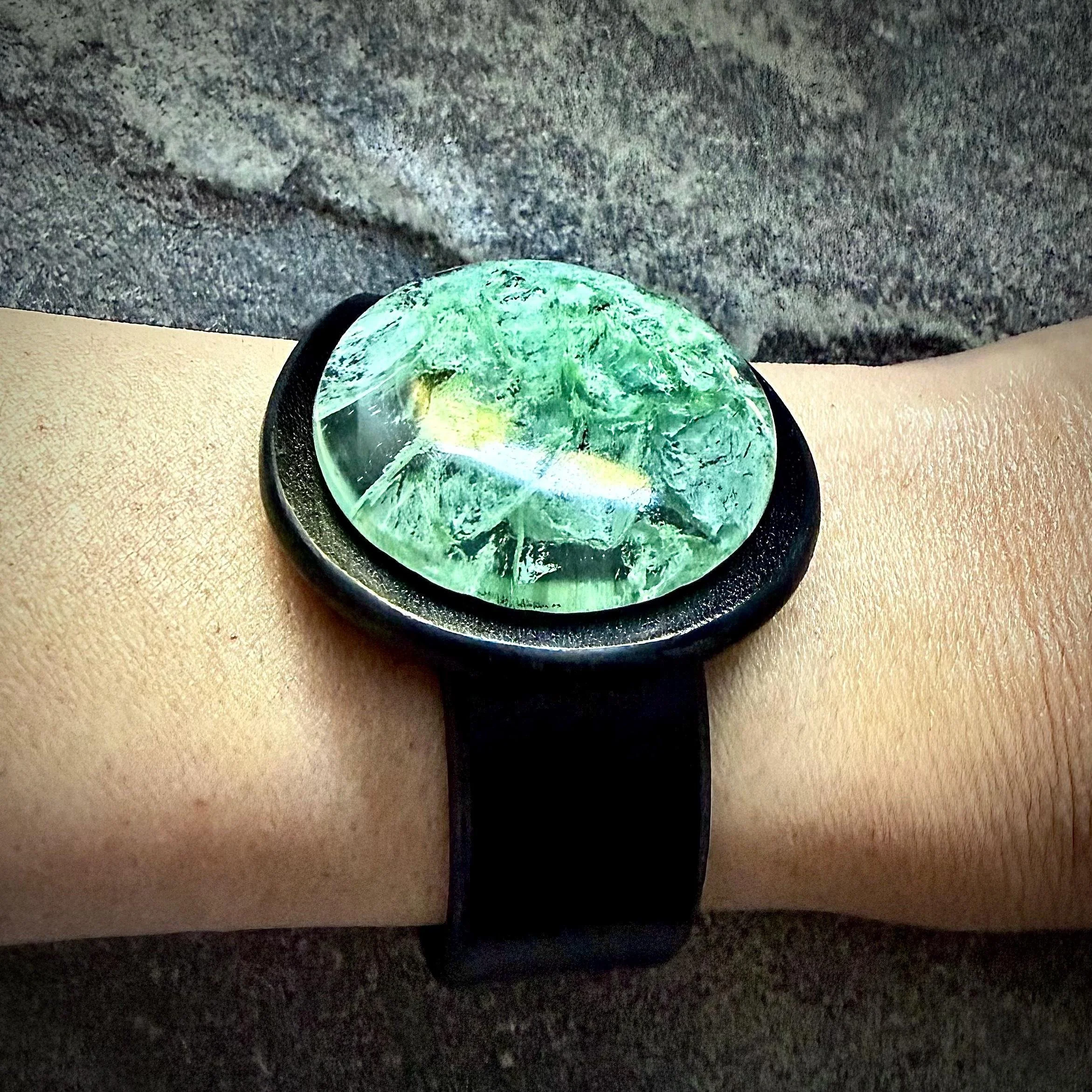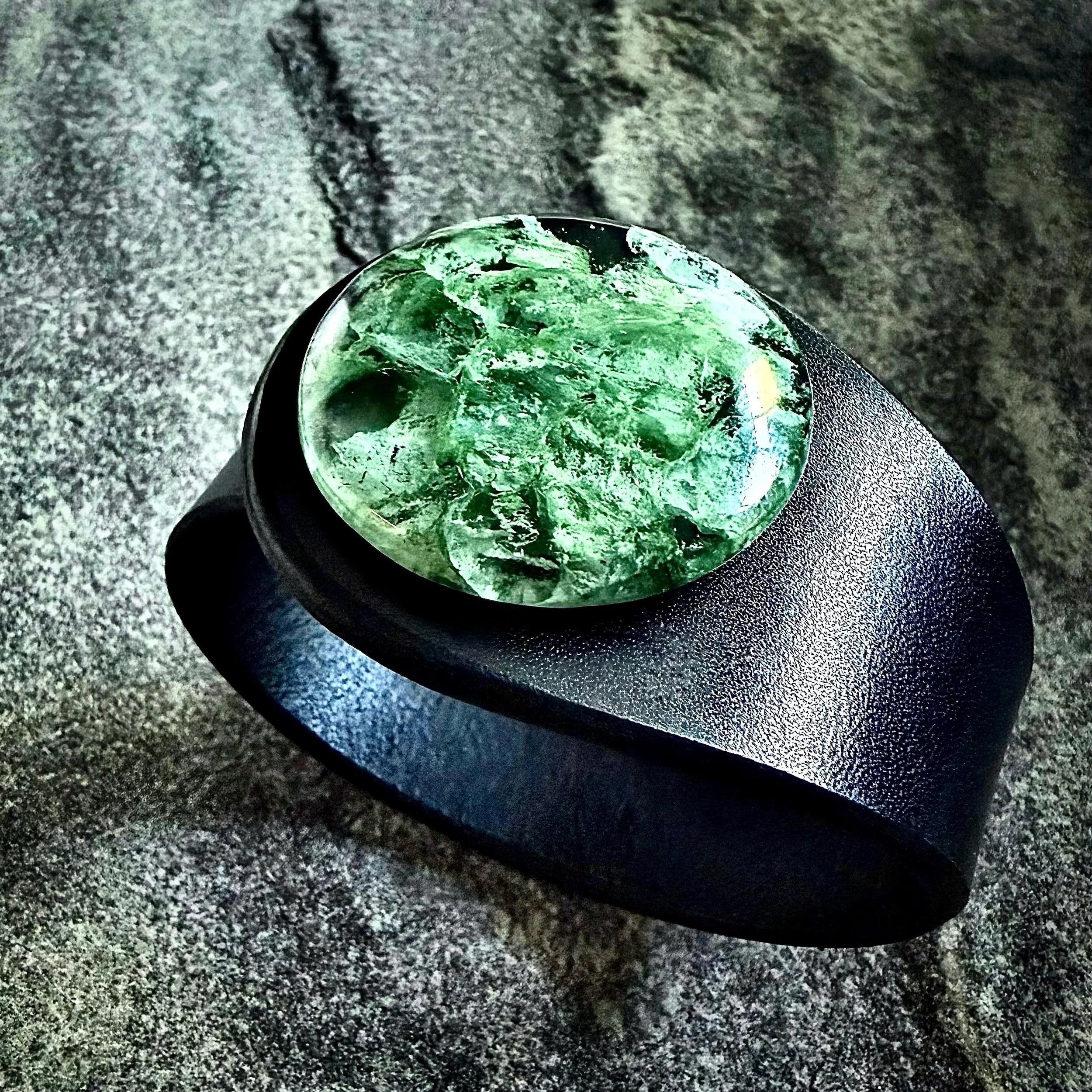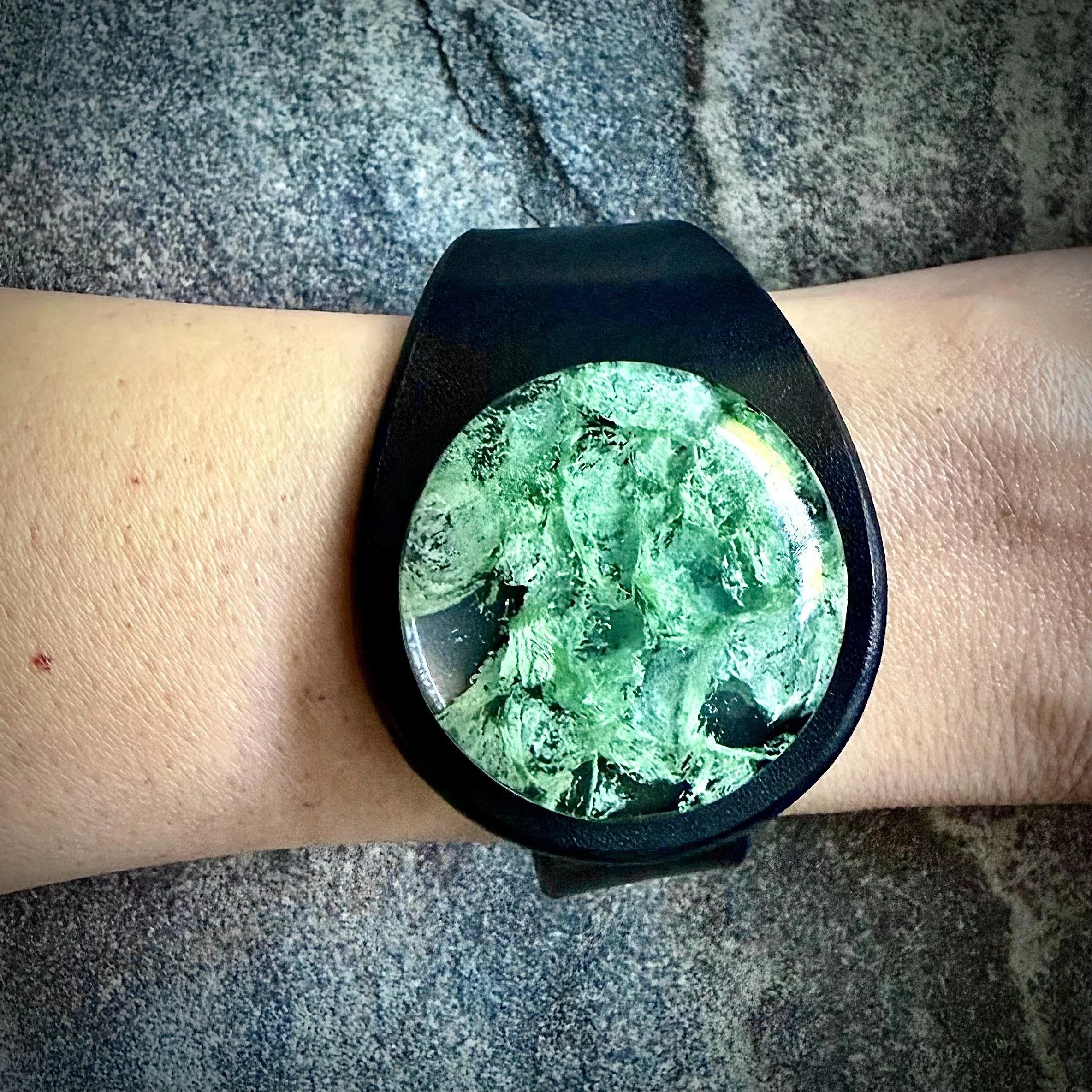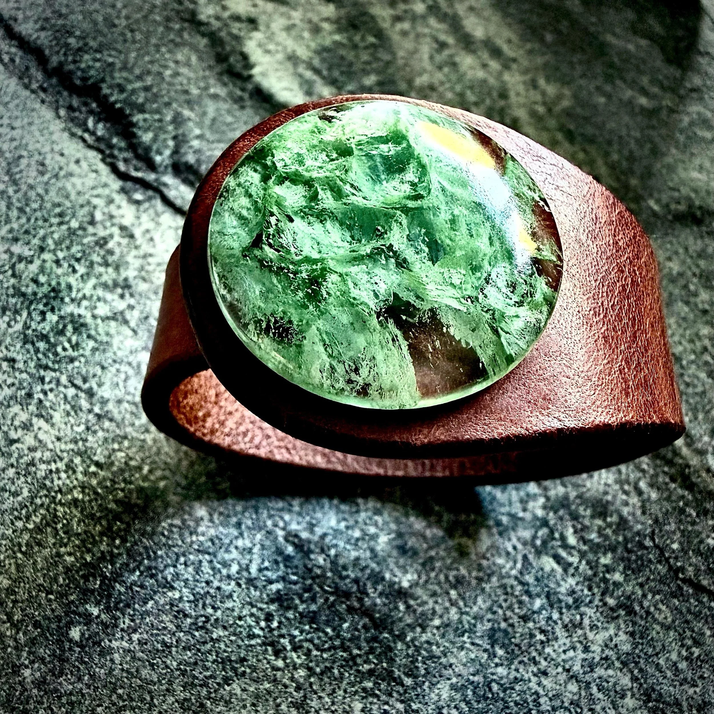 Lab Grown Moss Agate & Leather Cuff